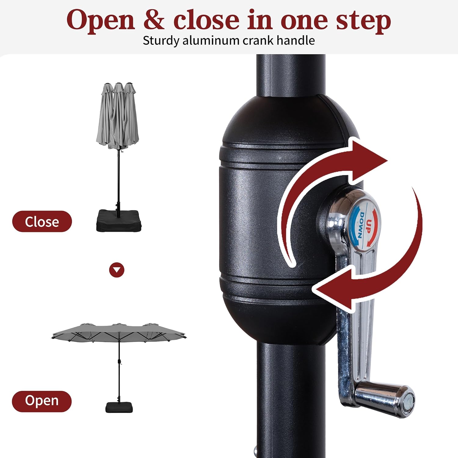 Vongrasig 15FT Large Patio Umbrella with Base Included, Outdoor Double sided Umbrellas with Crank Handle, Rectangle Table Umbrella for Pool Lawn Garden Market