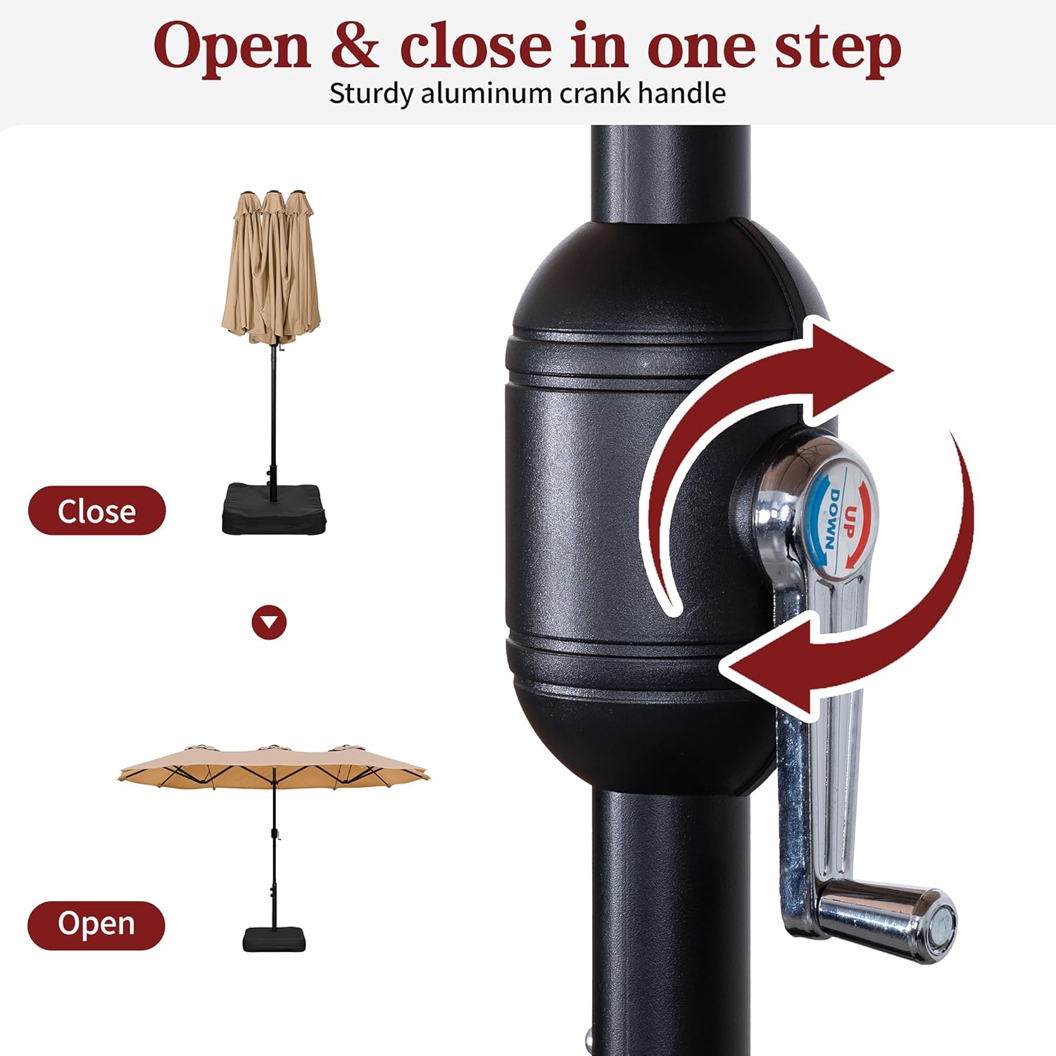 Vongrasig 15FT Large Patio Umbrella with Base Included, Outdoor Double sided Umbrellas with Crank Handle, Rectangle Table Umbrella for Pool Lawn Garden Market
