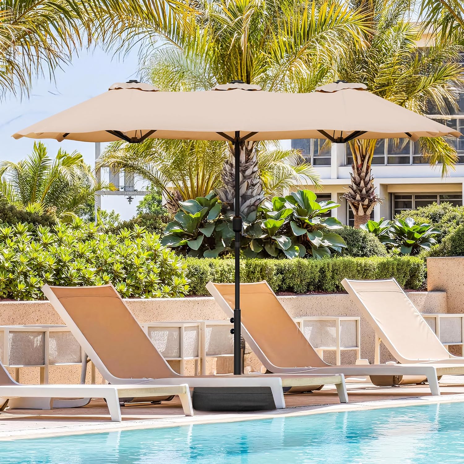 - Extra Large Shade: 16FT x 9 FT patio umbrella provides larger shading area up to 133 square feet shade area when fully open.Bringing a shady feel to a sultry afternoon. This double-sided patio umbrella is an ideal choice for both home use and market.