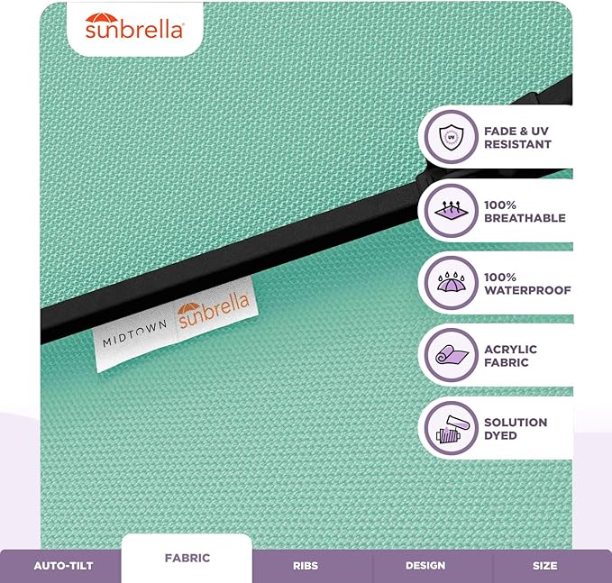 Midtown Umbrellas Sunbrella Umbrella 9 Feet Outdoor Umbrella With Canvas Glacier Acrylic Fabric - Auto-Tilt Aluminum Frame Patio Umbrella For Backyard, Deck, Garden, Pool - Black Pole