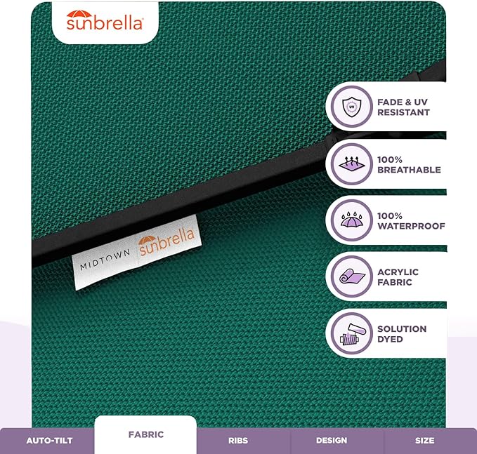 Midtown Umbrellas Sunbrella Umbrella 9 Feet Outdoor Umbrella With Canvas Teal Acrylic Fabric - Auto-Tilt Aluminum Frame Patio Umbrella For Backyard, Deck, Garden, Pool - Black Pole