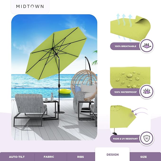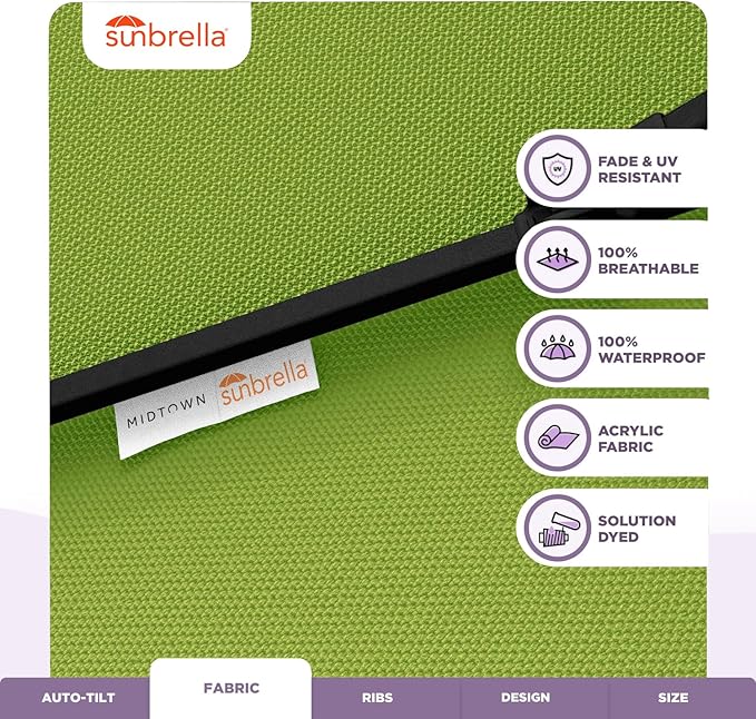 Midtown Umbrellas Sunbrella Umbrella 10 Feet Large Outdoor Umbrella With Sunbrella Macaw Acrylic Fabric - Auto-Tilt Aluminum Frame Large Patio Umbrella For Backyard, Deck, Garden, Pool - Black Pole