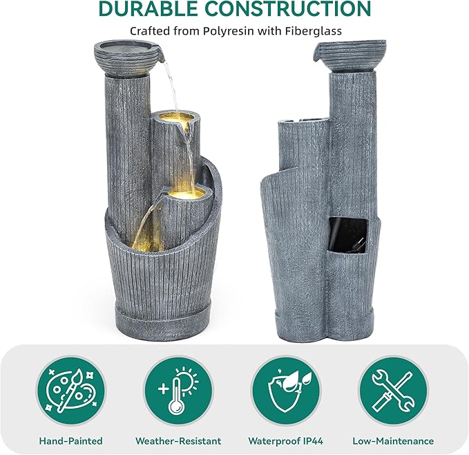 - Weather-Resistant Resin Build⛅: Crafted from premium resin and fiberglass with a handcrafted finish and textured details, this outdoor garden fountain is built to resist weather, rust, and scratches—ensuring year-round beauty with minimal upkeep.