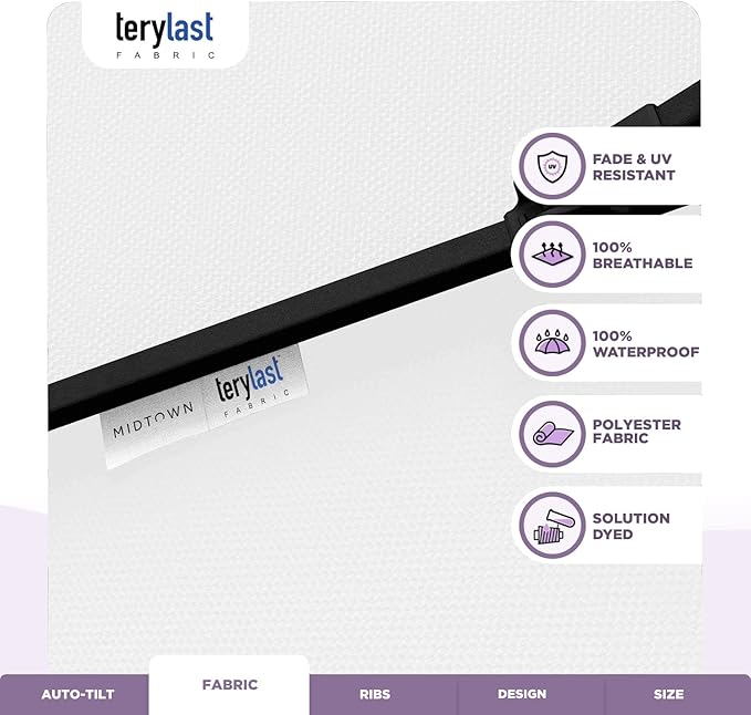 Midtown Umbrellas 10-Year-No-Fade - 8 Ft - UV Proof Ivory (White) Polyester Fabric - Umbrella Outdoor Patio, Auto-Tilt Aluminum Frame Patio Umbrella for Garden, Pool & Deck - Black Pole