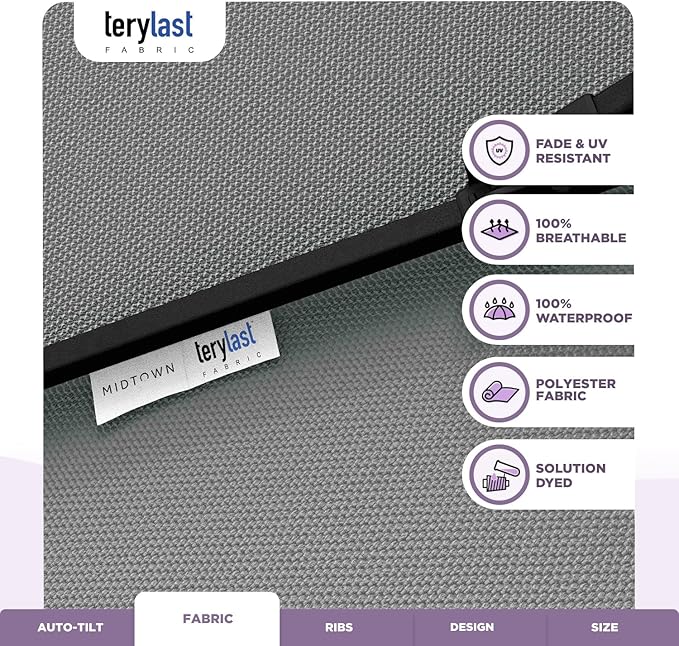 Midtown Umbrellas 10-Year-No-Fade - 8 Ft - UV Proof Matter (Grey) Polyester Fabric - Umbrella Outdoor Patio, Auto-Tilt Aluminum Frame Patio Umbrella for Garden, Pool & Deck - Black Pole