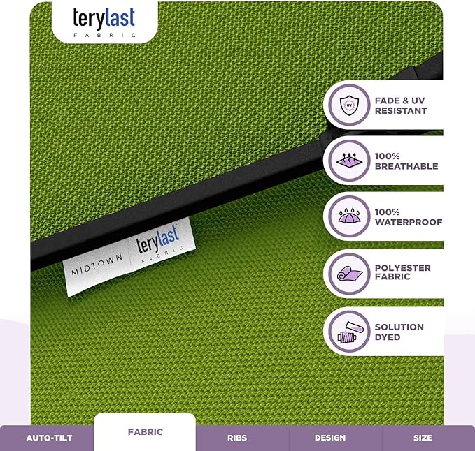 Midtown Umbrellas 10-Year-No-Fade - 9 Ft - UV Proof Pear Green Polyester Fabric - Umbrella Outdoor Patio, Auto-Tilt Aluminum Frame Patio Umbrella for Garden, Pool & Deck - Black Pole