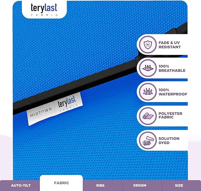 Midtown Umbrellas 10-Year-No-Fade - 9 Ft - UV Proof Cobalt Blue Polyester Fabric - Umbrella Outdoor Patio, Auto-Tilt Aluminum Frame Patio Umbrella for Garden, Pool & Deck - Black Pole