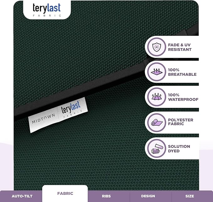 Midtown Umbrellas 10-Year-No-Fade - 8 Ft - UV Proof Forest Green Polyester Fabric - Umbrella Outdoor Patio, Auto-Tilt Aluminum Frame Patio Umbrella for Garden, Pool & Deck - Black Pole