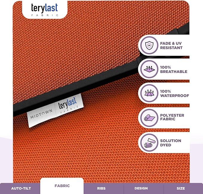 Midtown Umbrellas 10-Year-No-Fade - 9 Ft - UV Proof Tangerine Polyester Fabric - Umbrella Outdoor Patio, Auto-Tilt Aluminum Frame Patio Umbrella for Garden, Pool & Deck - Black Pole