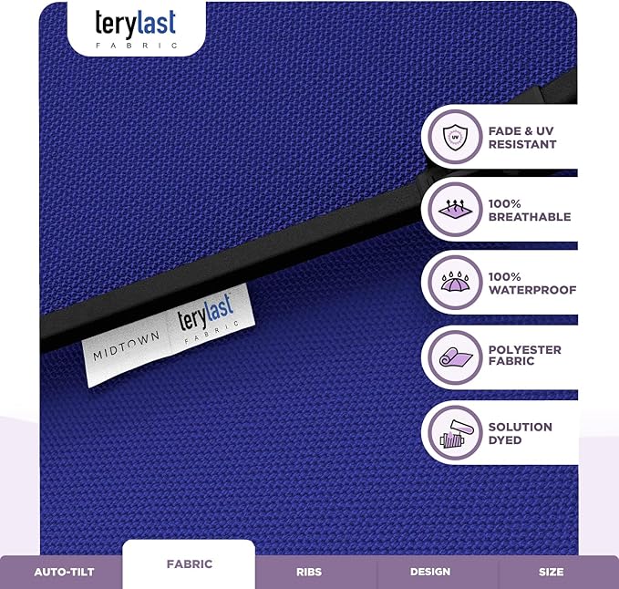 Midtown Umbrellas 10-Year-No-Fade - 8 Ft - UV Proof Royal Blue Polyester Fabric - Umbrella Outdoor Patio, Auto-Tilt Aluminum Frame Patio Umbrella for Garden, Pool & Deck - Black Pole