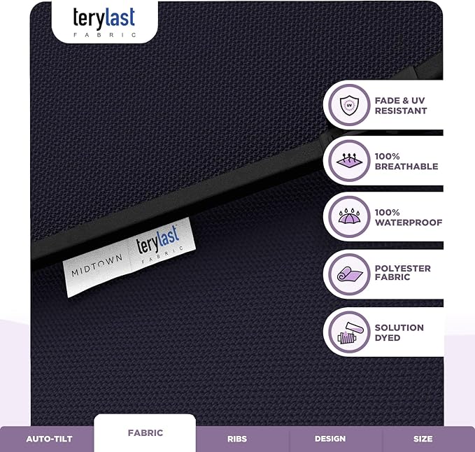 Midtown Umbrellas 10-Year-No-Fade - 6 Ft - UV Proof Navy Blue Fabric - Umbrella Outdoor Patio, Auto-Tilt Aluminum Frame Large Patio Umbrella for Garden, Pool & Deck - Black Pole