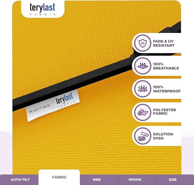 Midtown Umbrellas 10-Year-No-Fade - 9 Ft - UV Proof Yellow Polyester Fabric - Umbrella Outdoor Patio, Auto-Tilt Aluminum Frame Patio Umbrella for Garden, Pool & Deck - Black Pole