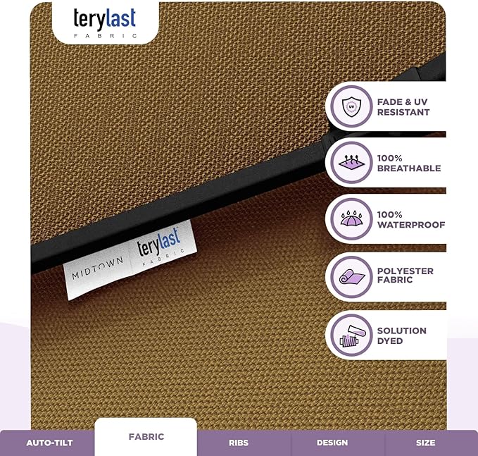 Midtown Umbrellas 10-Year-No-Fade - 9 Ft - UV Proof Sand Tan Polyester Fabric - Umbrella Outdoor Patio, Auto-Tilt Aluminum Frame Patio Umbrella for Garden, Pool & Deck - Black Pole