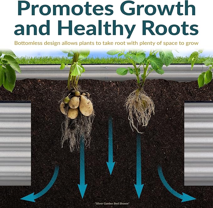 - IMPROVED GROWING CONDITIONS: This sturdy metal raised bed offers better growing conditions for vegetables and flowers. Raised garden beds allow anyone to choose the right soil for specific plants. Plus, the bottomless design ensures proper soil drainage.