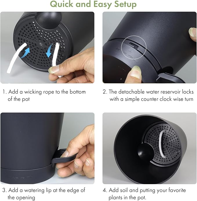 - 【Self-Watering Design】These self watering pots for indoor plants are designed with a wick rope that draws water from the reservoir at the bottom. The set of 6 plastic self watering planter provides an optimal air circulation system for plant roots