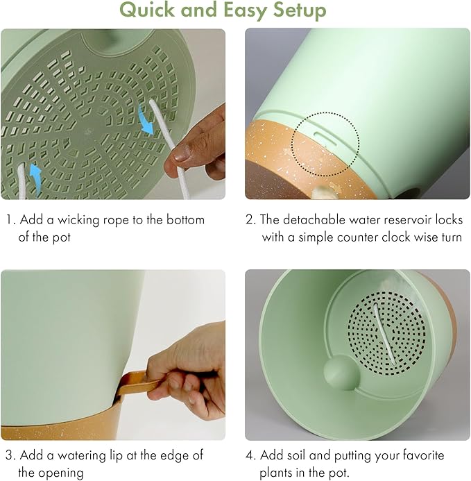 - 【Self-Watering Design】These self watering pots for indoor plants are designed with a wick rope that draws water from the reservoir at the bottom. The set of 6 plastic self watering planter provides an optimal air circulation system for plant roots