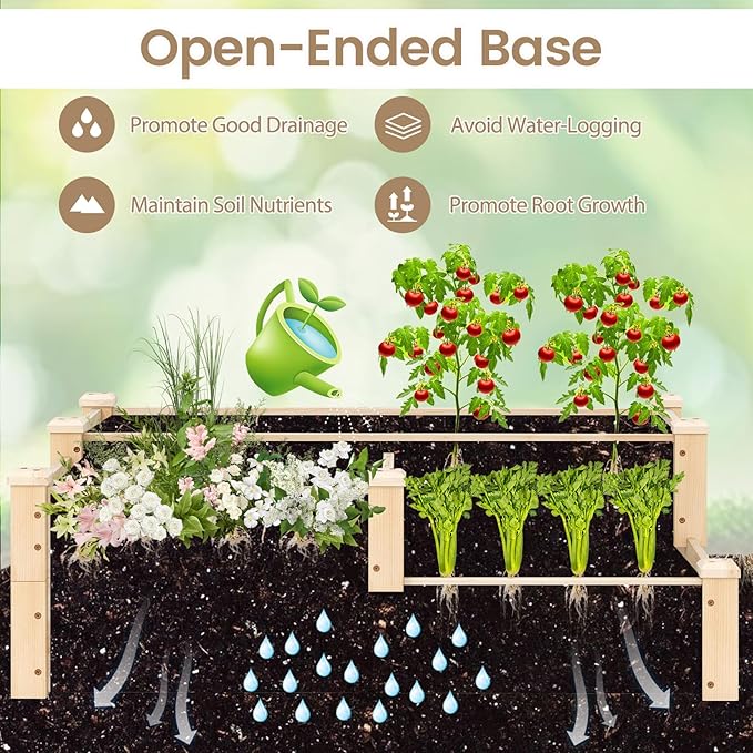 HAPPYGRILL 3-Tier Raised Garden Bed, Wood Elevated Planter Box w/Open-Ended Base, 3 Planting Depths& 2 Arrangement Options for Yard Lawn, Outdoor Planter Raised Beds for Vegetables Herbs Fruits