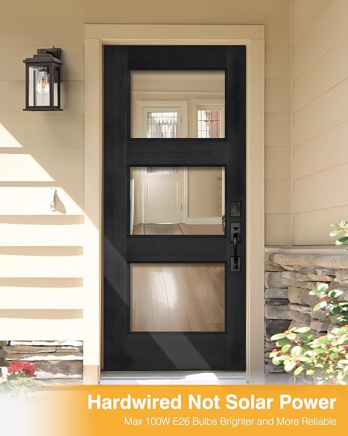 - Easy Installtion and E26 Socket: Tired of high electrician bills? Our pre-assembled outdoor lanterns for porch install in 3 steps: attach the bracket, connect wires, secure with screws—done. UL-certified and hardwired keep your outdoor lamp light on even in bad weather. ①Our outdoor light fixture made in Aluminum weighs only 3.44 pounds, making installation a breeze! ② Bottom opening allows you to easily change bulbs while maintaining good heat dissipation for longer bulb life. ③Color-coded wiring labels - allows for easy installation and DIY even if you are not an electrician. Dimmable LED bulbs or incandescent bulbs are recommended to avoid flickering issues.(Bulb not included)