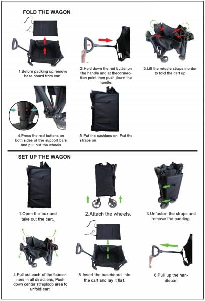 - 【Upgraded larger capacity - smaller folding】: The wagons carts foldable weights only 13 pounds, with unfolded dimensions of 31.5"x 37.4" x 15.7"and folded dimensions of 27" x 16.5 "x 6", and comes with mesh cup holders. It can be easily stored in the trunk of your car for convenient transportation.