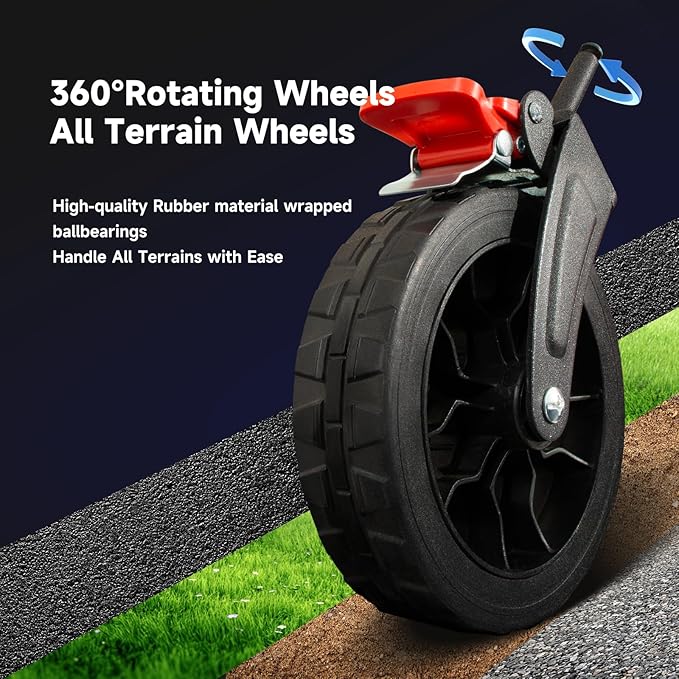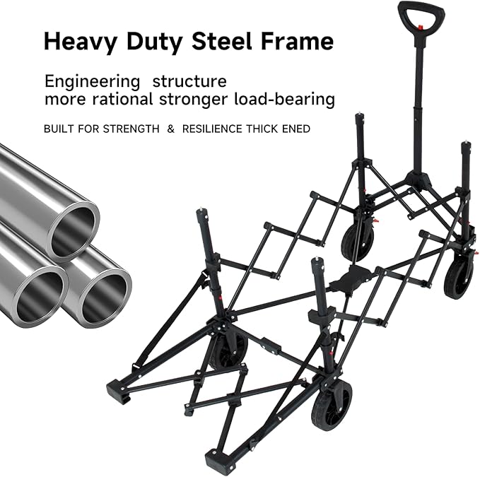 - 【Smooth transportation】The folding wagon cart with wheels adjustable handle to confirm different heights; The front part with brakes can rotate 360 ° with 2 wheels, which can not only run smoothly on the road, but also brake on slopes to prevent slipping