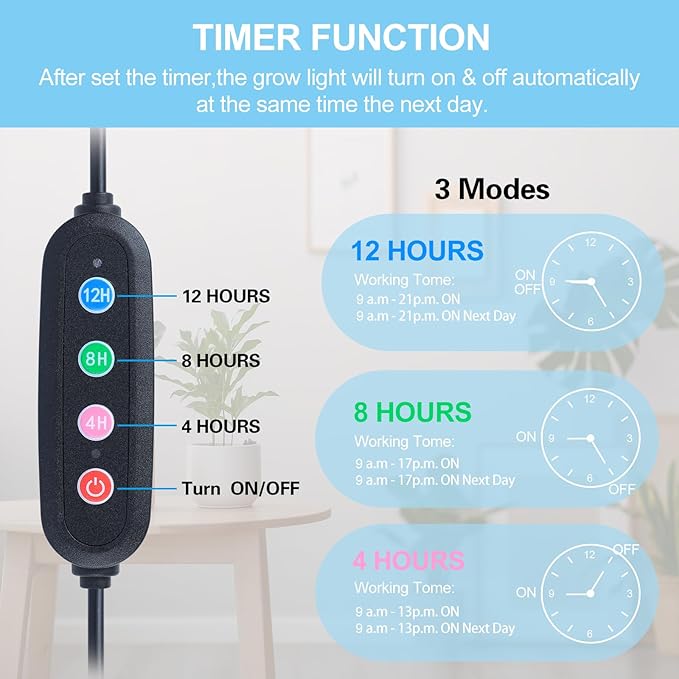 • Smart 4-8-12H Timer---Auto Cycles for Perfect Plant Care (Set It & Forget It!)