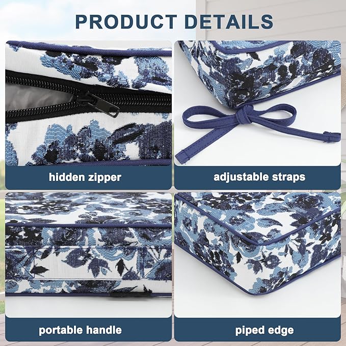 - Details - Removable cover makes the cushion easy to clean, machine and hand washable. Two adjustable straps help secure the cushion and prevent sliding. Portable handles make the cushion easy to carry and piped edges help to keep its original shape.