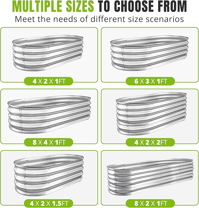 - 𝙐𝙥𝙜𝙧𝙖𝙙𝙚𝙙 𝙙𝙪𝙧𝙖𝙗𝙡𝙚 𝙨𝙩𝙧𝙪𝙘𝙩𝙪𝙧𝙚: Raised garden beds outdoor are made of high-quality galvanized metal sheet, double-layer anti-corrosion galvanizing and oval structure design, which is more beautiful, has excellent load-bearing capacity and anti-rust performance; is not easy to loosen; the interface will not deform; adapts to a variety of environments, and is durable