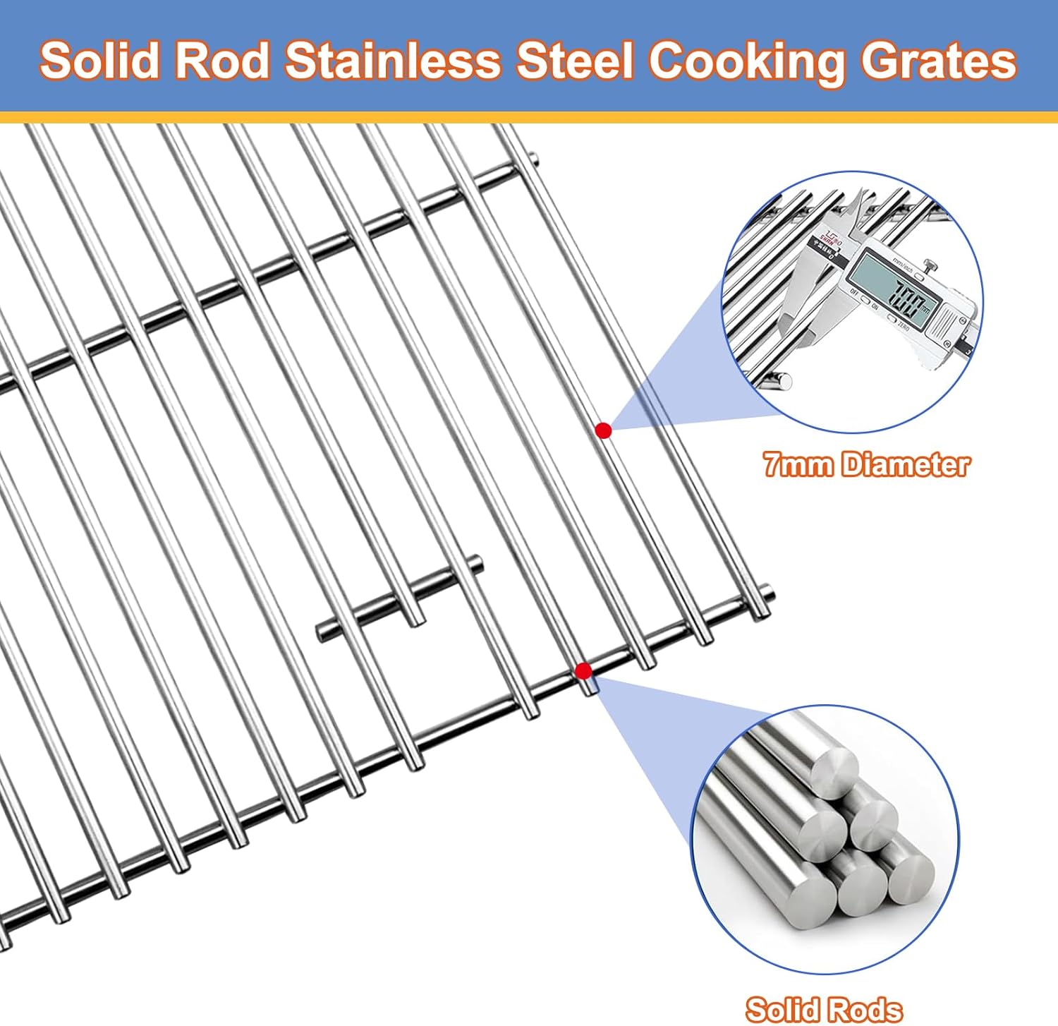 • 【Dimensions and Package】 Package include 2 pack grill heat plates and 2 pack cooking grates. Heat Plates - 13" x 6.18", Grid Grates - 13.2' x 20.2", 265-Square inch grates