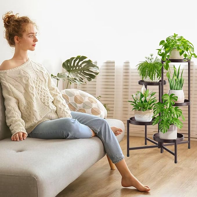 - Unique Modern Style Holder: The 5 tier plant stand is designed with a unique spiral tiered structure that can hold up to 5 pots without blocking each other, so that each of your plants can fully enjoy the sunlight. Modern and classic in style, this outdoor plant stand is perfect for decorating balcony, porch, garden, patio, window and office