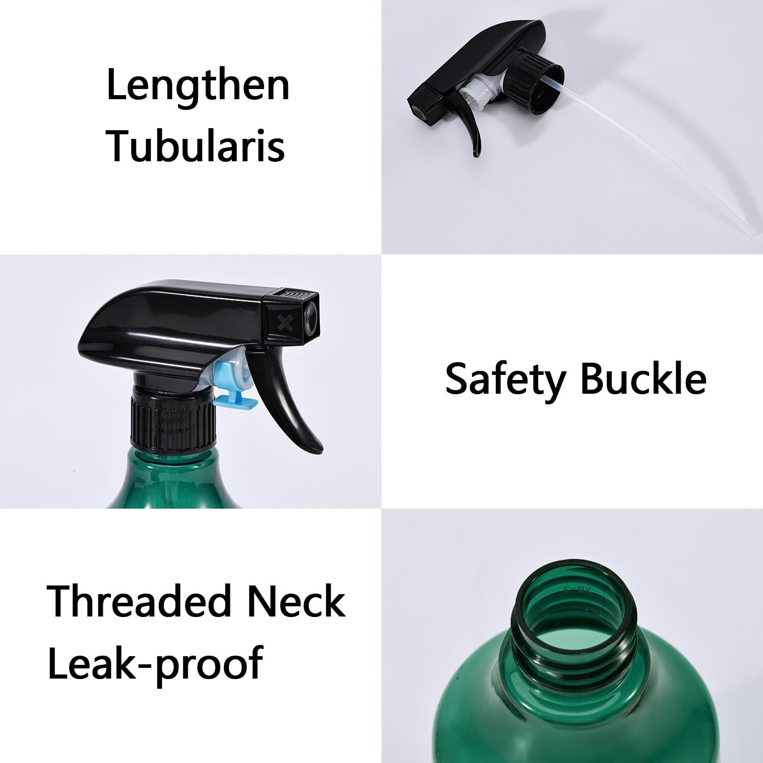 • FEATURES: Transparent , you can see how many liquid left clearly; safety buck and threaded neck prevents liquid from leaking efficiently; fine and homogeneous mist