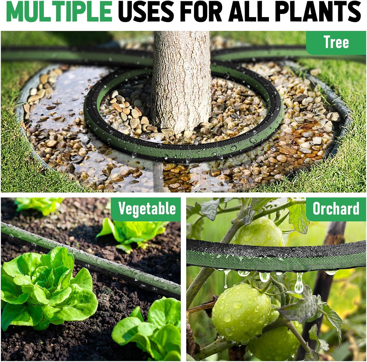 - Ultra-Durable & Sun-Resistant Soaking Hose: Made with UV-resistant rubber + reinforced fabric cover, our drip irrigation hose withstands kinking, (30-40 PSI recommended), and harsh weather. Lies flat makes it a breeze to roll up and store for next season.