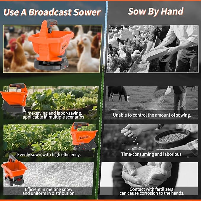 - 【Four-Season Utility】Greatly improves work efficiency by being usable year-round, whether sowing seeds in spring, spreading fertilizer in summer, sprinkling salt in winter, or feeding animals as needed.