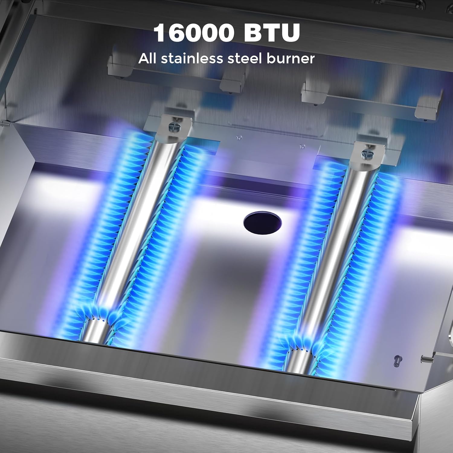 - Dual-Burner Precision Control: Equipped with two independently adjustable 8,000 BTU burners, this gas grill offers precise heat management for versatile cooking—sear steaks on high heat while simmering sauces on low, all with unmatched fuel efficiency. Perfect for BBQ grill enthusiasts who demand precision in every flame