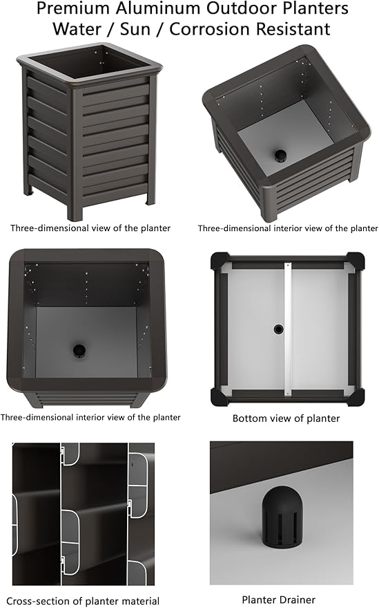 - Premium Aluminum Construction: Crafted from premium-grade aluminum, this tall outdoor planter offers exceptional durability and a lightweight design that resists rust, ensuring long-lasting beauty and performance in various climates while maintaining structural integrity and enhancing your garden or patio aesthetics.