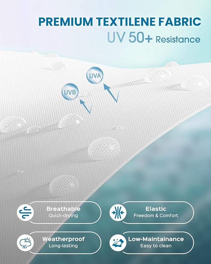 - Premium Textilene Fabric – Our pool lounge chairs feature innovative textilene mesh fabric which offers exceptional durability alongside superior breathability and quick-drying performance, ensuring air circulation and ventilation on hot days for optimal comfort