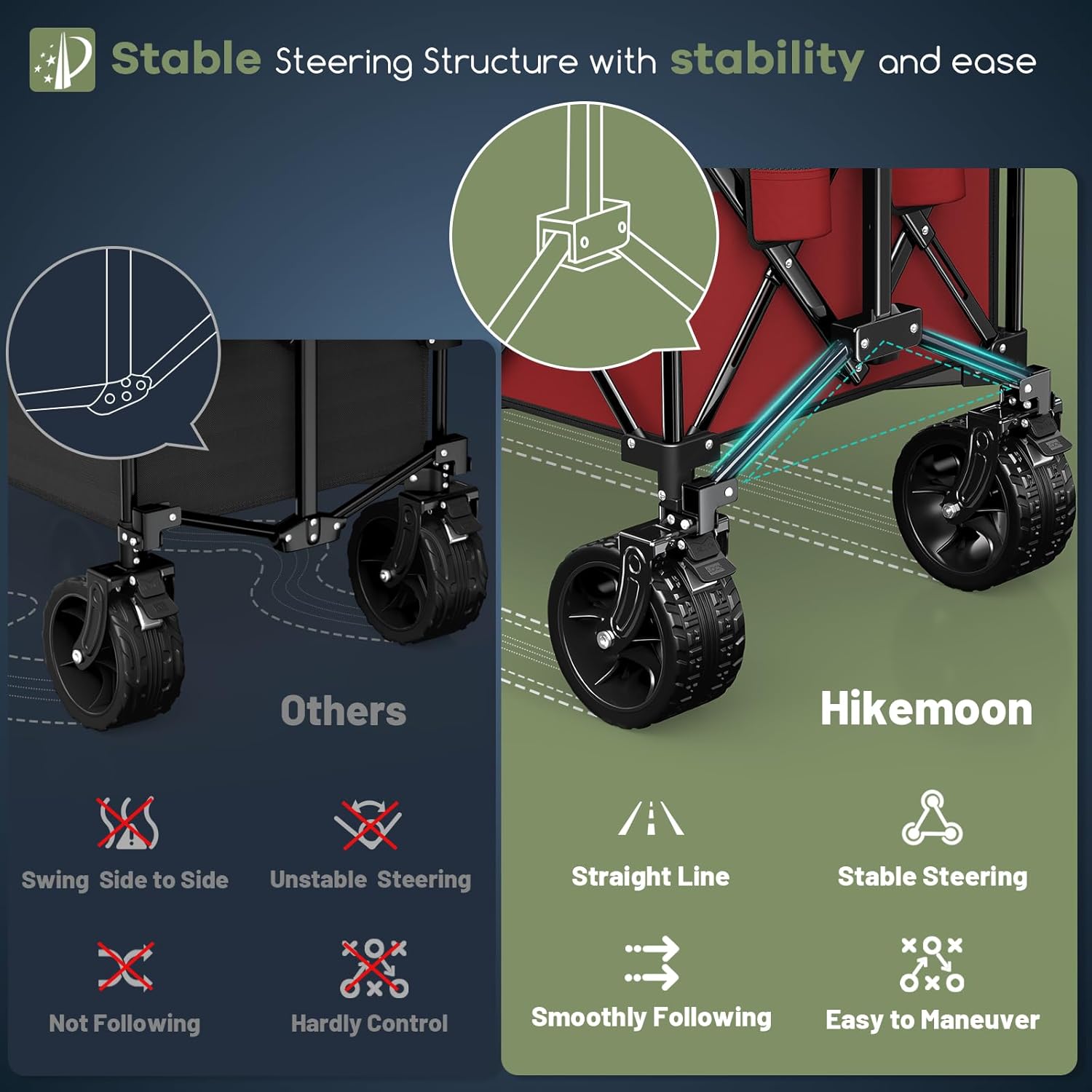 - ใ๐๐ซ๐จ๐๐ฎ๐๐ญ ๐๐ข๐ณ๐, ๐๐ข๐๐ ๐๐จ๐๐ค๐๐ญ ๐๐ง๐ ๐๐ฎ๐ฉ ๐๐จ๐ฅ๐๐๐ซ๐ฌใ: Hikemoon collapsible wagon cart ๐ฎ๐ง๐๐จ๐ฅ๐๐๐ ๐ฌ๐ข๐ณ๐: 46.06"D x 22.64"W x 24.17"H, ๐๐จ๐ฅ๐๐๐ ๐ฌ๐ข๐ณ๐: 12.59"D x 8.98"W x 24.17"H, ๐ฐ๐ก๐๐๐ฅ ๐ฌ๐ข๐ณ๐: 7" x 4", ๐๐ฒ๐ถ๐ด๐ต๐ ๐ผ๐ณ ๐๐ฎ๐ป๐ฑ๐น๐ฒ ๐๐ผ ๐๐ฟ๐ผ๐๐ป๐ฑ: 42.91". Features one Oxford side pocket and two cup holders for convenient storage of drinks and personal items.