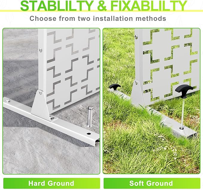 - 【Robust Metal Build】The metal privacy screen boasts a robust construction crafted from high-quality galvanized steel. Designed to endure the rigors of outdoor elements, its sturdy build guarantees prolonged durability.