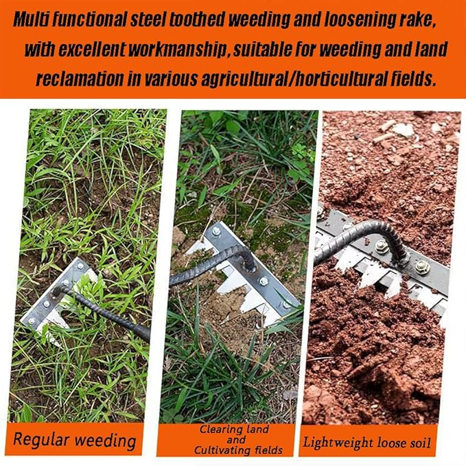 • Efficient Weed Removal :Tackle stubborn weeds effortlessly in gardens, farms, or lawns with sharp manganese steel tines that penetrate soil smoothly, saving time and energy during yard work.
