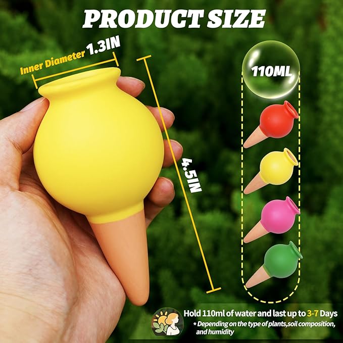 - 🌈【Versatile & User-Friendly】These self watering planter inserts are easy to use, Just soak in water for a minute or two, then insert into your plant. Fill it with water and it slowly water the plant. It has a wide mouth opening that you can easily pour the water into. Pro tip: For better results, pre-wet your soil and soak the watering stakes in water until they're completely soaked through