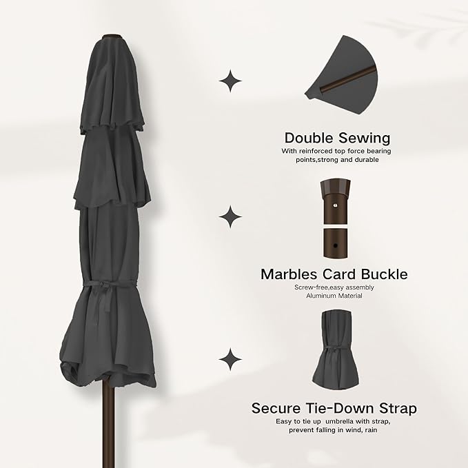 - 【3-Tier Vented Top】Our innovative 3-tier vented canopy is engineered to withstand the winds, preventing the umbrella from tipping over or inverting. Relax and enjoy your outdoor space without worrying about sudden gusts.