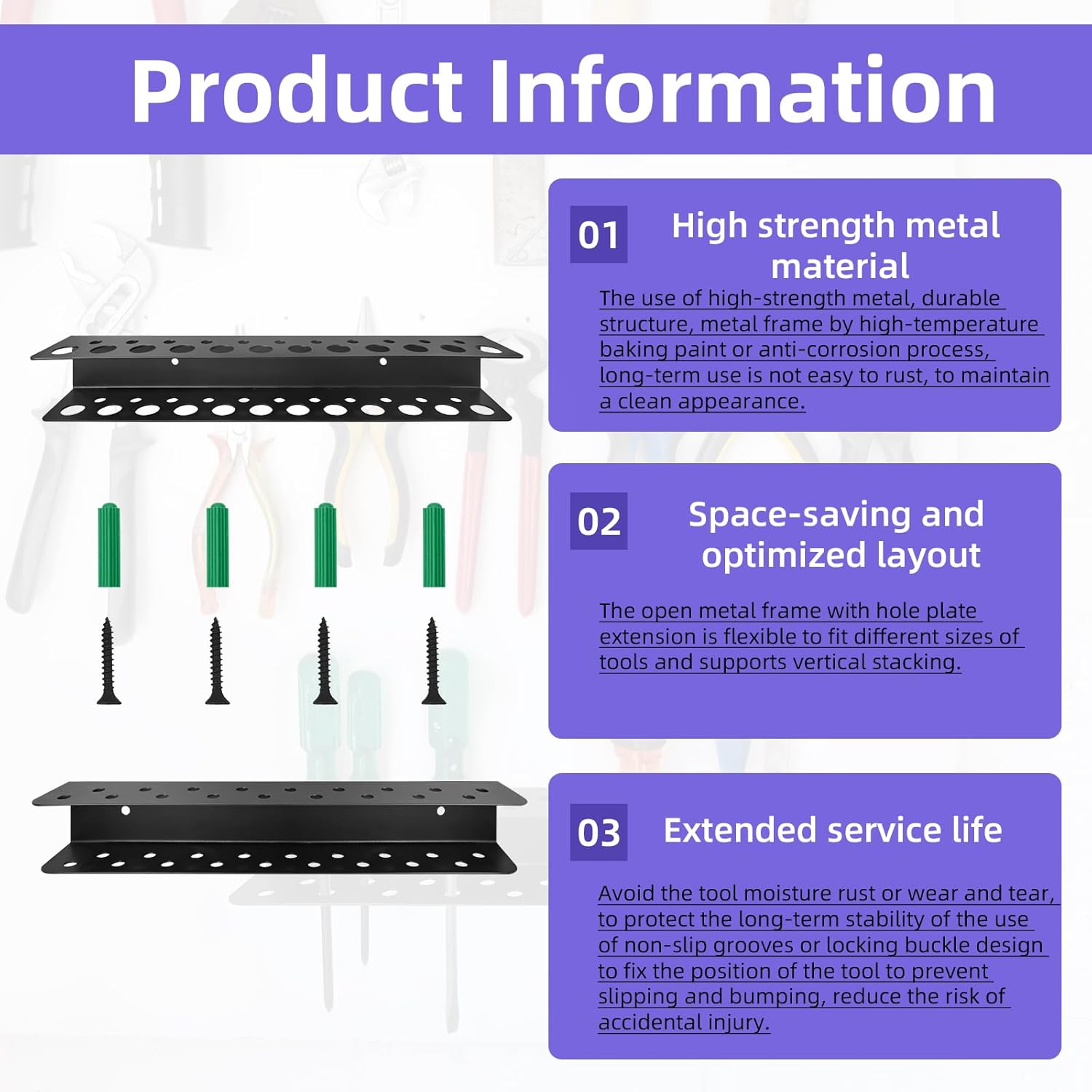 - Quick & Easy Installation – Mount securely in minutes with pre-drilled holes (compatible with screws or adhesive strips) to save wall space and keep tools within reach