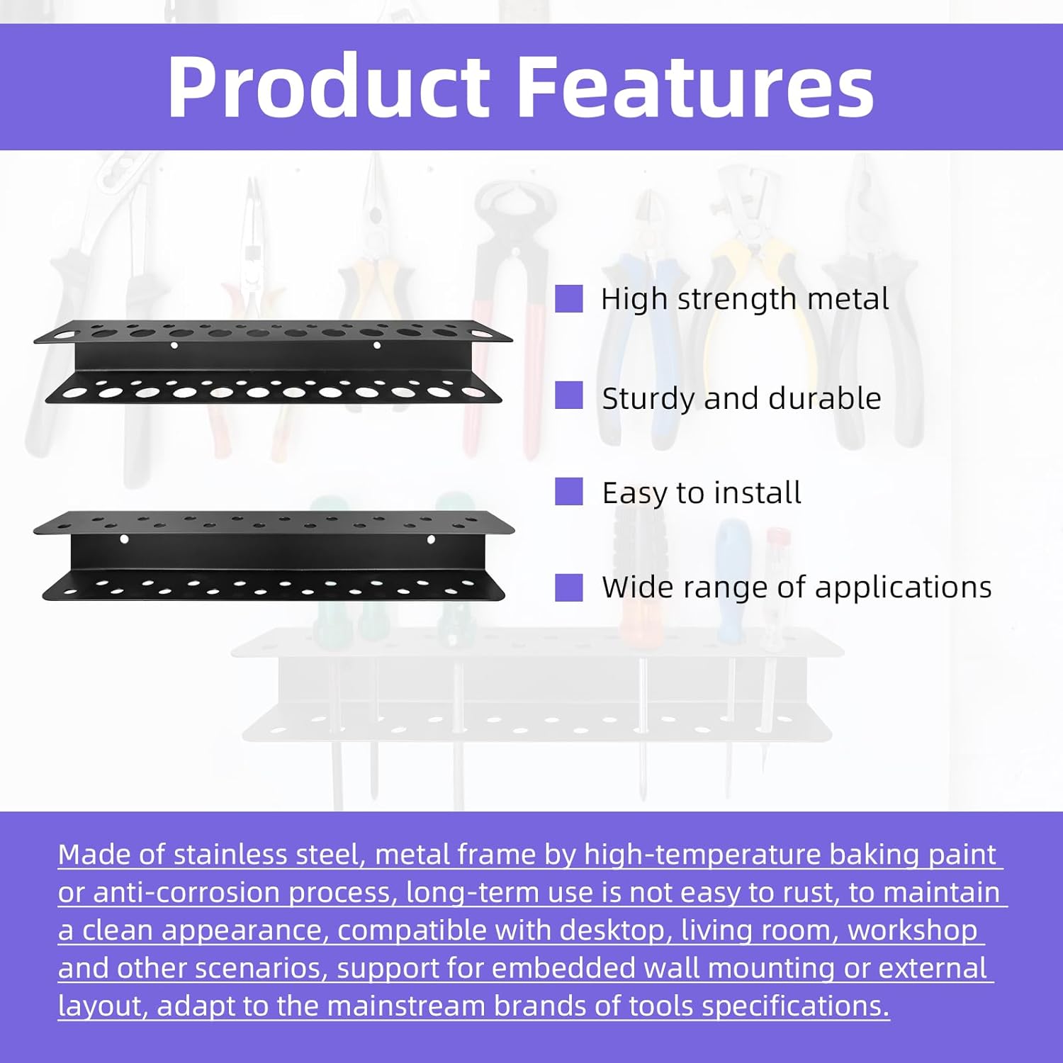 2 Pack Screwdriver Organizer Wall Mounted – Heavy Duty Rustproof Tool Organizer with Durable Design, Space-Saving Storage for Garage, Workshop, Home Workbench