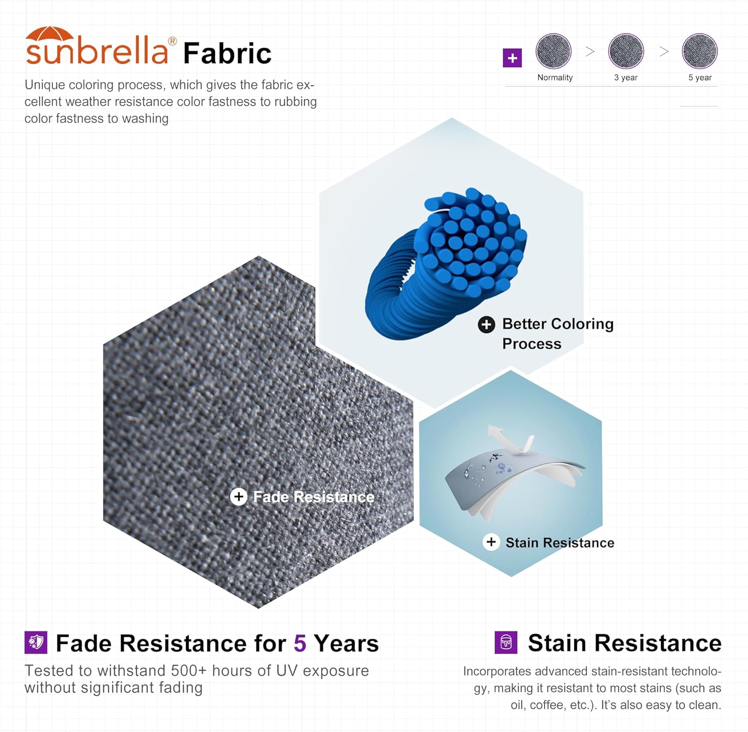- Sturdy Aluminum Construction: Featuring a full aluminum frame with powder-coated finish and 8 heavy-duty ribs, this cantilever umbrella is designed for strength and longevity, ensuring reliable support and enduring performance.