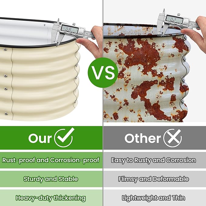 - Long-Lasting Quality:The garden beds are made of zinc aluminum-magnesium steel for durability. This advanced material is more resistant to corrosion and rust than traditional galvanized materials. Lasts 2-6 times longer than traditional galvanized raised beds, far longer than wood raised garden bed.