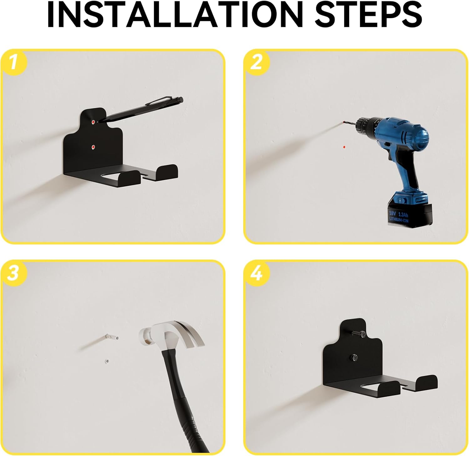 - Multi-Purpose: Garden power tool hanger for multiuse can hold up to various tools in your garage or yard, like shovels rakes, brooms, mops, drills, sports equipment, hoses, cables, cord and so on