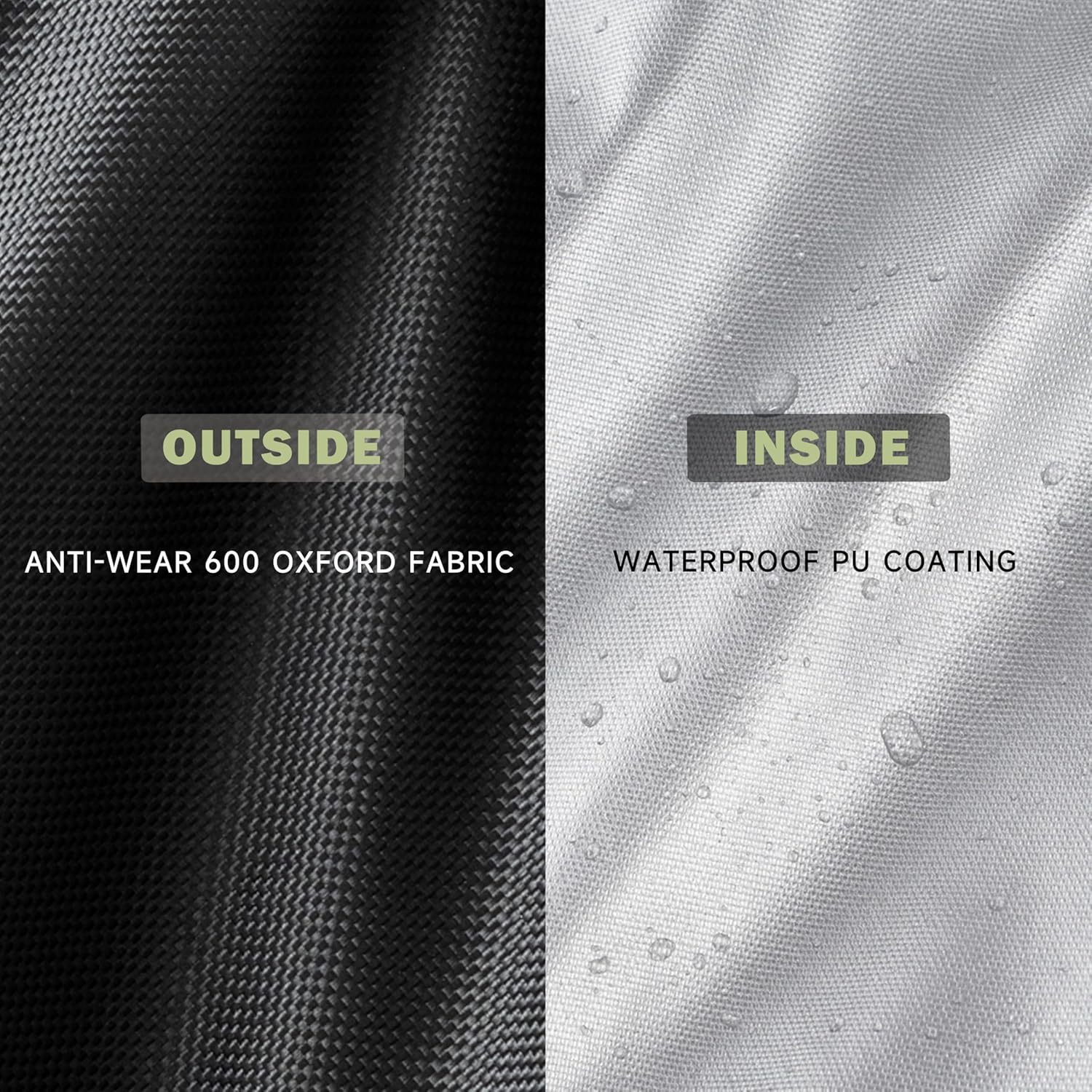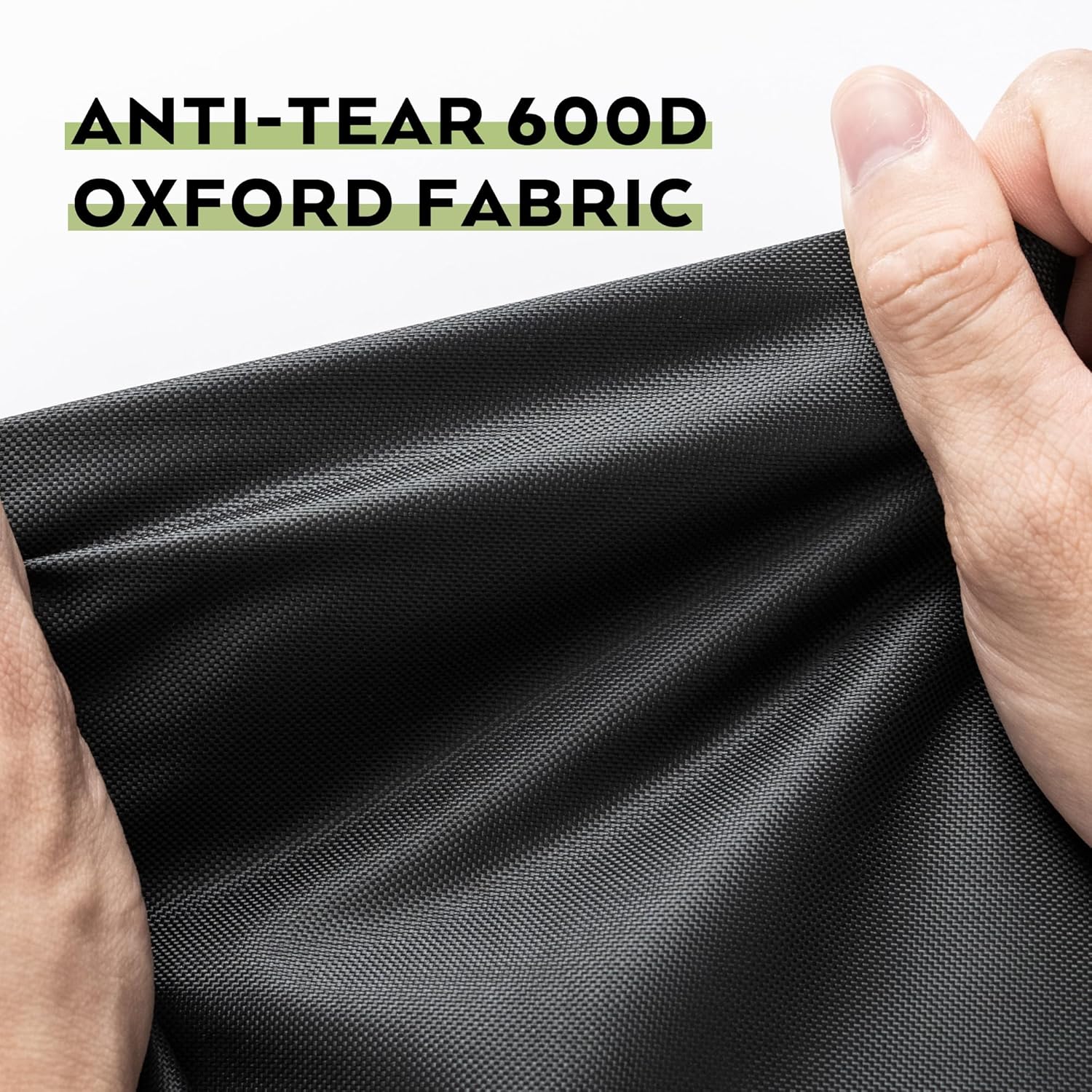 - ANTI-TEAR MATERIAL β Designed to be long lasting, this grill cover is made of high-density 600D oxford fabric with reinforced stitching, which is heavy duty and durable materials that can withstand harsh weather conditions and resist tearing, fading, and other types of damage