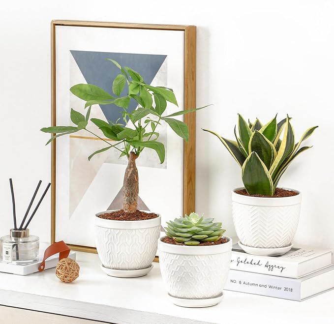 - Excellent Craftsmanship: These indoor plant pots are made of high-quality materials and fired at high temperatures, making them thick, sturdy, and resistant to cracking; Each succulent pot with saucer is carefully wrapped in thick foam to prevent damage during shipping, ensuring a longer service life