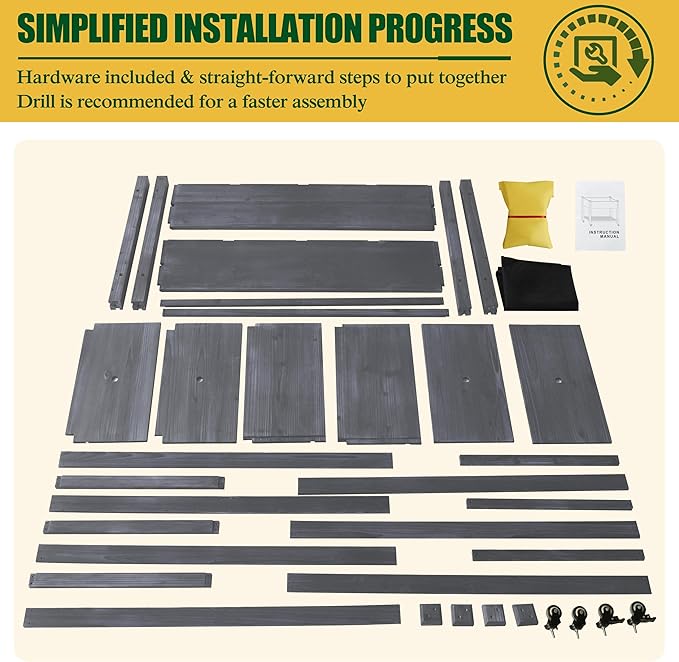 - SPACIOUS GROWING AREA WITH DRAINAGE HOLES & SHELF-With ergonomic design of raised legs for height, this garden bed is such a pain relief for gardening lovers! Its deep and wide growing area would offer you spacious room for sure with a total of four drainage holes at the bottom for better planting and growing circumstance. The extra shelf at the bottom is a great addition to store small gardening tools such as flower pots, shovels, seeds and hose reel.