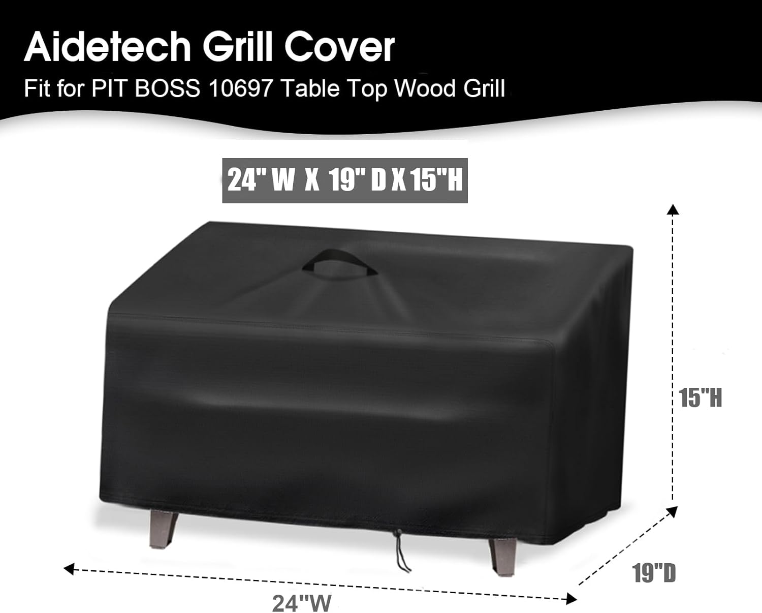 • Grill Cover Size:19"D x 24"W x 15"H. Compatible for PIT BOSS 10697 Table Top Wood Grill and other portable grills with the same size. Please double check the size of your portable smoker before buying