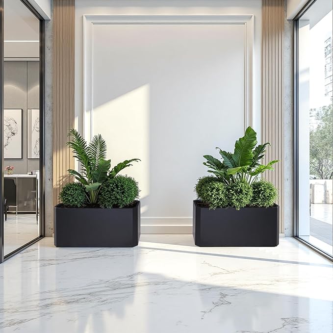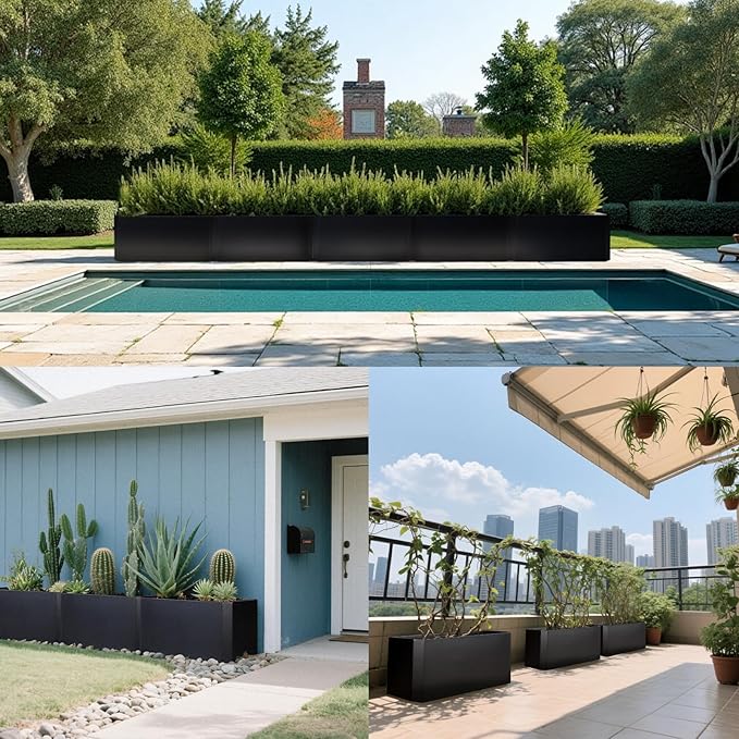 • 【Material And Size】: Black Rectangular Planter size 36''L x 15''W x 15''H, made of high quality galvanized steel, strong and durable, anti-deformation and corrosion resistance, long service life.